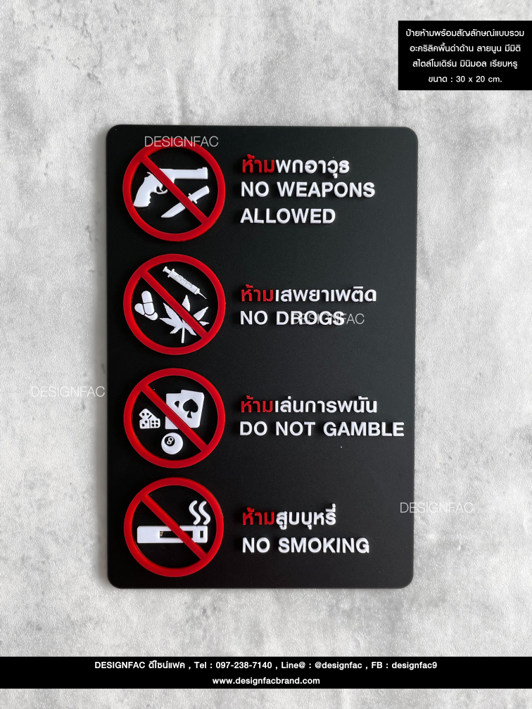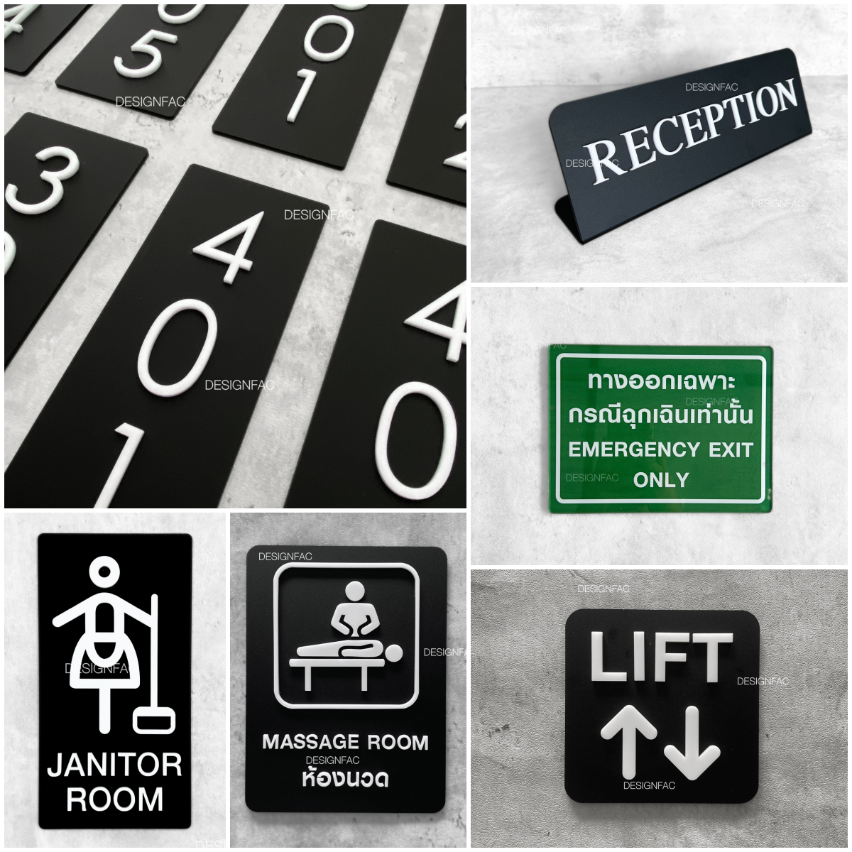 ทำไมต้องมี: เป็นเรื่องความปลอดภัยและสิ่งที่กฎหมาย/มาตรฐานอาคารอาจกำหนด — ป้ายเหล่านี้ต้องชัดเจนและมีมาตรฐานสี/สัญลักษณ์สากล