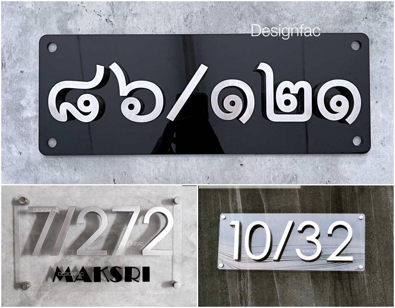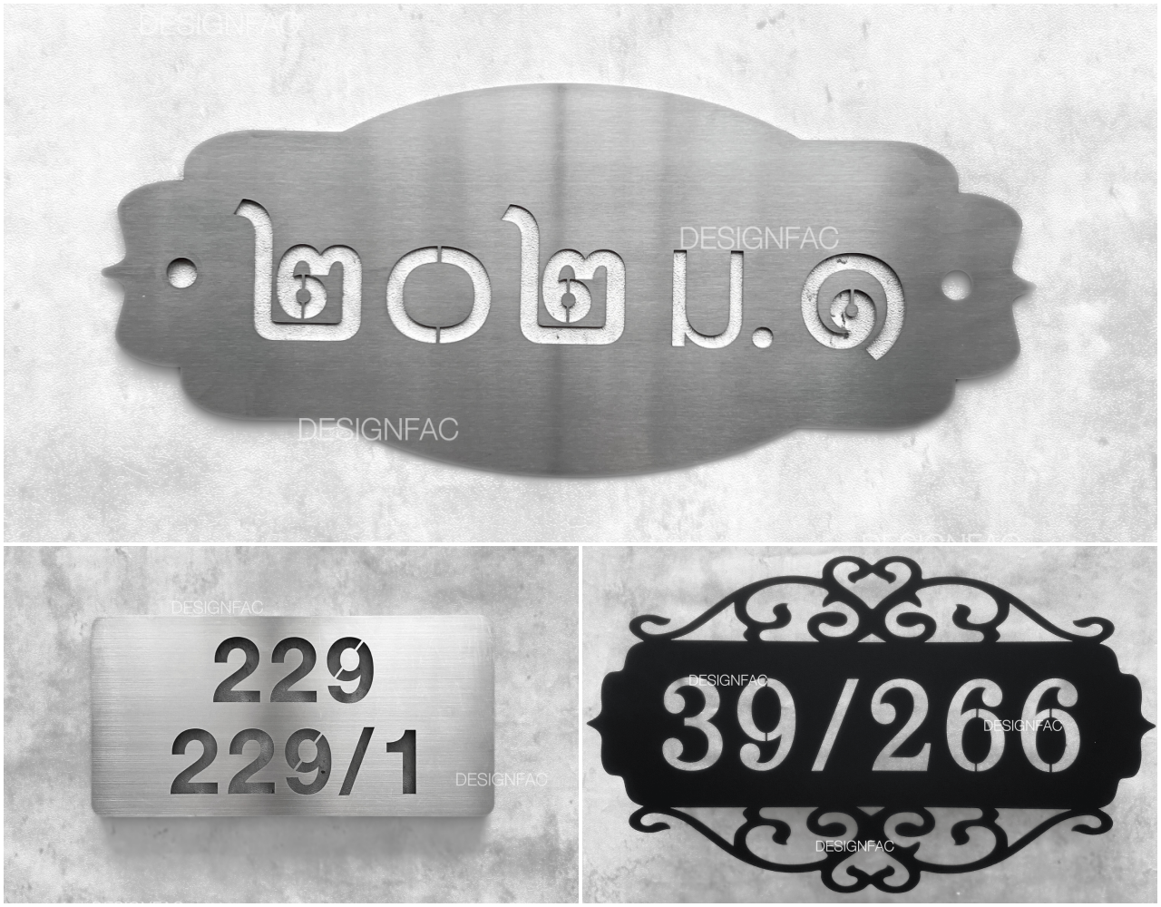 2. ป้ายสแตนเลสบนพื้นอะคริลิค (Acrylic Backing with Stainless Numbers)