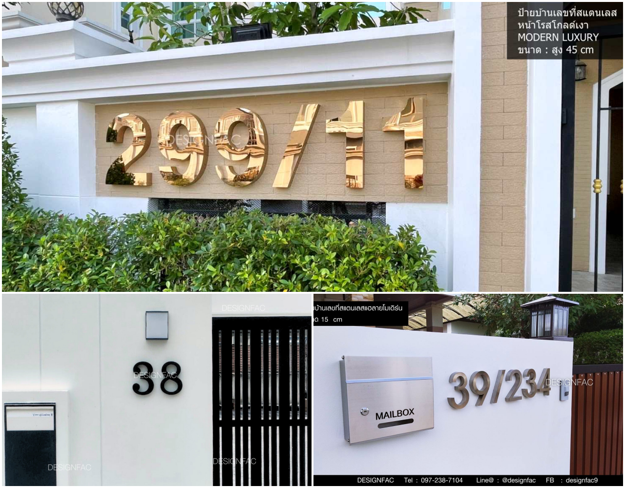 ป้ายบ้านเลขที่สแตนเลส ไม่ได้มีดีแค่ความสวยงาม แต่ยังโดดเด่นในเรื่อง ความทนทานสูง ต่อทุกสภาพอากาศของประเทศไทย ไม่ว่าจะเป็นแดดจัดหรือฝนชุก ก็มั่นใจได้ว่าจะ ไม่เกิดสนิม และคงความเงางามหรูหราไว้ได้ยาวนาน เราในฐานะผู้เชี่ยวชาญด้านงาน ป้ายอะคริลิค และ ป้ายสแตนเลส เข้าใจดีว่าป้ายแต่ละแบบมีเอกลักษณ์เฉพาะตัวอย่างไร เราจึงรวบรวม 5 สไตล์ป้ายบ้านเลขที่สแตนเลสยอดนิยม ที่จะช่วยยกระดับหน้าบ้านของคุณให้ดูโดดเด่นและพรีเมียมยิ่งขึ้น